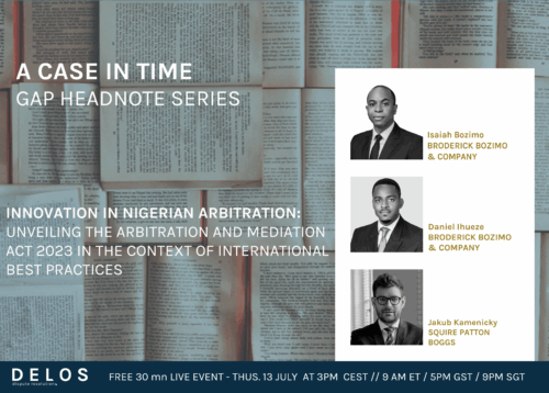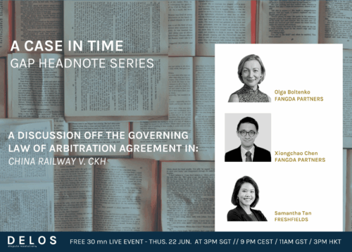 Taking place on Thursdays, A Case In Time combines weekly 30mn pinpoints with a comparative law angle: our Headnote entries, and monthly 90mn deep dives into landmark court decisions: our Journal entries. These events build on Delos’s leading practitioner Guide to Arbitration Places (GAP).